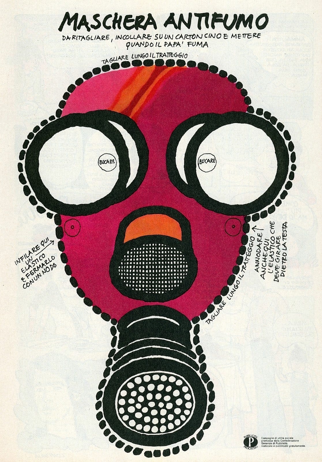 “Antismoking mask” printed in Italian comics, to “put on when Dad smokes”, which probably got Dads to stop buying comics