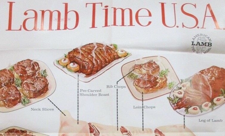 Sad to say, the loyalty of some ethnic communities to lamb didn’t help its acceptance in the wider US market. “Sheep also came to be seen as a meat for immigrants, particularly those from southern and eastern Europe, who were America’s most reliable lamb eaters,” writes economic history professor Iker Saitua. “American Indian tribes, particularly in Navajo country, also embraced lamb. These social and ethnic associations with sheep meat cemented its outsider status. Meanwhile, the meatpacking industry promoted beef as quintessentially American.”