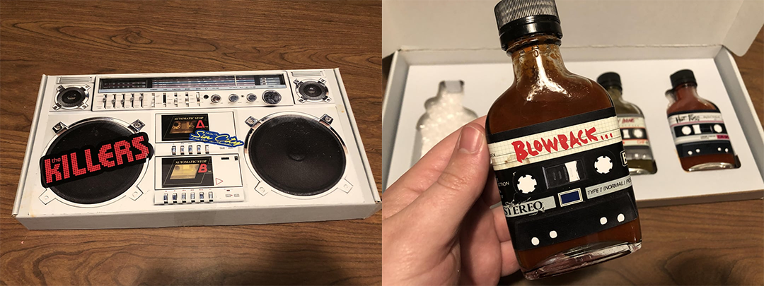 On the face of it, there's no obvious connection between hot sauce and the stadium indie rock of the Killers, no particular reason the band behind "Mr. Brightside" should also have any aptitude for working with "aged chilis, habanero peppers, cayenne peppers, and hickory-smoked sea salt." On the other, they worked with a local Las Vegas sauce company to develop the flavors and manufacture The Killers Hot Sauce, and they sold out of all 2,500 sets they made in a few weeks, and that faux-boombox box is pretty neat. So who am I to judge?