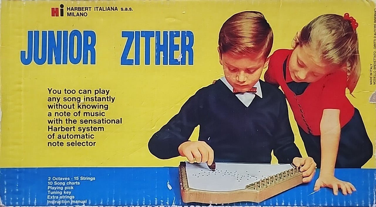 Essentially a music-education toy, the Junior Zither came with song sheets you could slide under the strings that showed you exactly how to pick out simple melodies on the order of “Twinkle, Twinkle, Little Star”. It’s a long way from the virtuosity of Karas. But the idea must have resonated (sorry), because variations like The Music Maker Lap Harp remain on the market today - I can’t resist plinking around on it whenever I see one at a toy store.