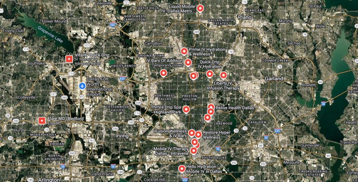 Estimates of the industry as a whole point to about 9,000 med spas in the US, turning over about $15 billion a year. If hangover IV represents a small fraction of that total, it’s still not chump change. The point is, any decent-sized metro area will have a range of options, from upscale Zen-drenched “IV lounges” to rough-and-ready needles-on-wheels outfits consisting of little more than a van and a bag of medical supplies.
